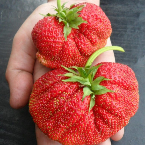Плоди яскраво-червоного відтінку, по поверхні розташовані білі цятки. Маса однієї полунички варіюється між 60 та 100 грамами. Смак солодкий, з незначним ананасовим присмаком.