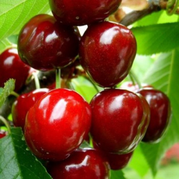 Плоды — округло-сердцевидные, весом по 8-10 г каждый. Созревшие ягоды окрашиваются в красно-бордовый цвет и приобретают приятный десертный вкус. Красная мякоть мясисто-плотной консистенции, сочная, содержит мелкую свободную косточку.