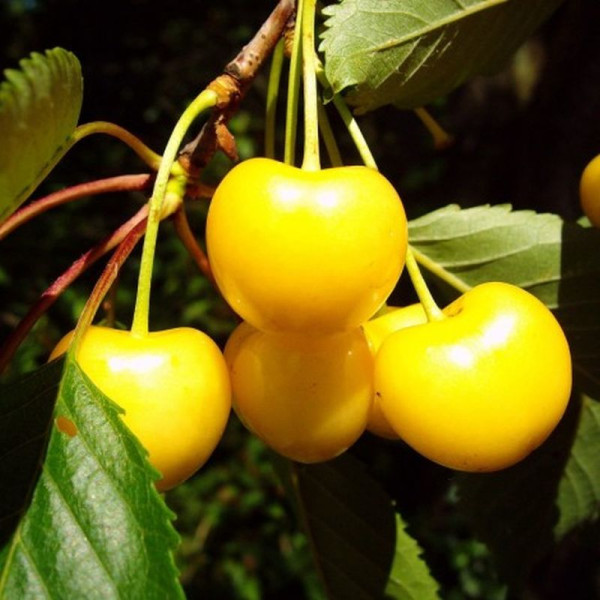 Плоды — сердцевидно-округлой формы, вес одной ягоды достигает 6-8 г. Нежно-желтая покровная кожица очень тонкая и гладкая. Овальная косточка отделяется с усилием от сочной, сладкой мякоти кремового цвета с малозаметными прожилками вдоль стенок.