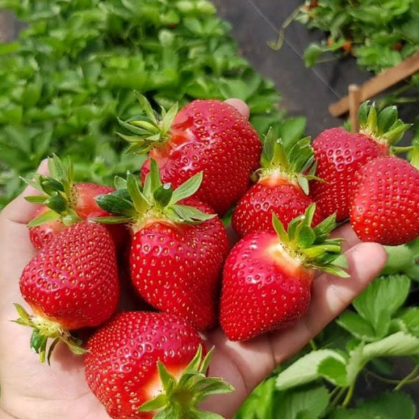 Плоды конические с притупленной верхушкой. Ягоды весом до 40-50 г. Расцветка кожицы красивая, темно-вишневая. У внутренней части вкус сладкий, кислинка полностью отсутствует. Плоды плотные, без внутренних пустот. Клубника прекрасно транспортируется, не теряет товарный вид.