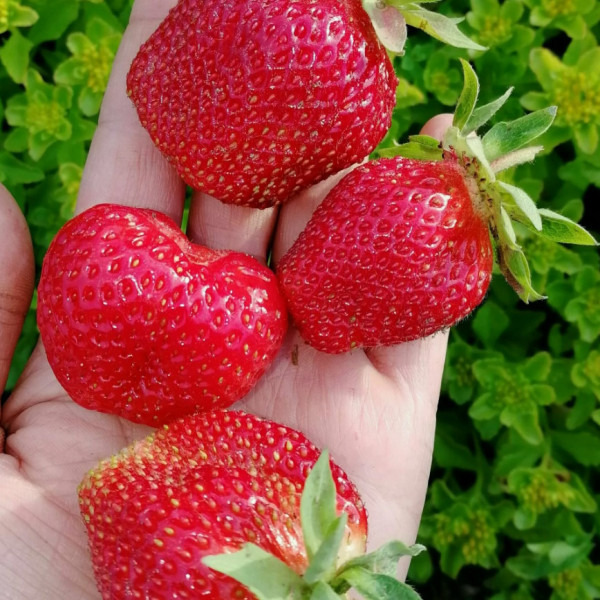 Ягоды — большие, приплюснуто-вытянутой формы, глянцево-красные, разнокалиберные, вес одной колеблется в границах от 35 до 65 г. Разрез без пустот, розово-красного цвета. Мякоть мясистая, средней плотности. Во вкусе преобладают сахара с малоощутимой кислинкой.