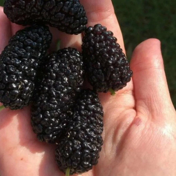 Шовковиця "Великоплідна" - це дерево може зрости у висоту більше 5 метрів, проте зручніше за допомогою формування зробити його компактнішим - не вище трьох метрів, крону найчастіше формують у вигляді кулі. Шовковиця живе у середньому 200 років. Листя велике, зазвичай у вигляді лопаті із зубчастою окантовкою. Ягоди близько трьох сантиметрів, смачні, соковиті. Є багатокістянкою, за загальним виглядом нагадує малину, за розміром та формою – фініки. З одного дерева за сезон можна зібрати великий урожай – до 100 кг.